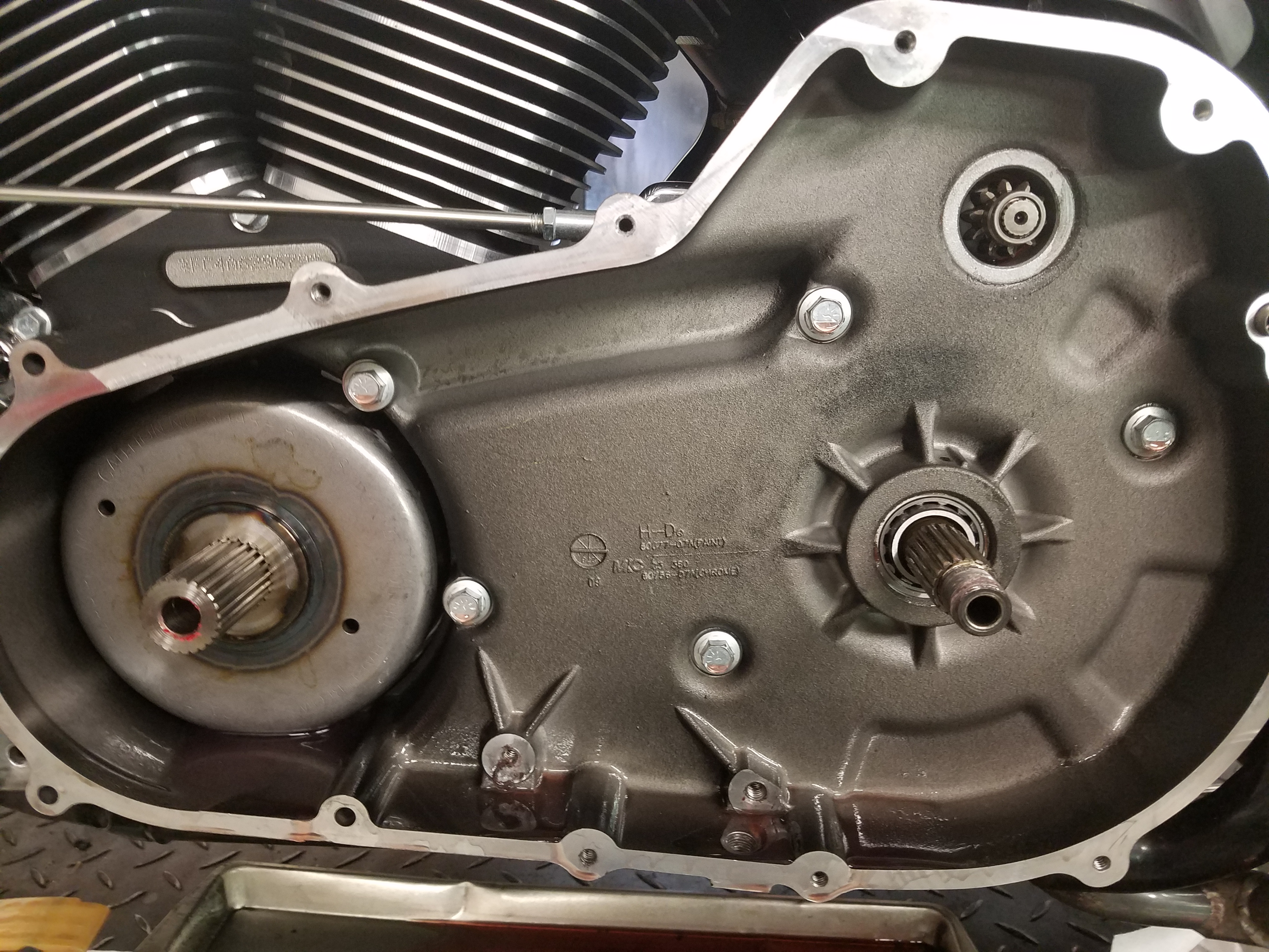 Hi Kenneth I talked to you guy's awhile back about my old 07 street glide the grinding noise it was making when you let the clutch out and wouldn't move belt was wiped out when clutch was let out it would grind like a starter on a car was still engaged or stuck between 2 gears when I drained Prim. & Trans no metal and drain plugs good. After taking it apart and looking at the and the bearings bearings felt good the main drive 5th gear Prim. bearing and race the trans main were clean no pitting race had not walked but you could see wear chain had rub'ed along side of inner prim. and the bottom bolt hump the compensator and in front of the clutch assy. starter ring from top to bottom flipped it and a few of to inside spilnes were about 1/32nd in bearing felt good and looked good so I slid the 2 assy. back on the bike took a straight edge laid it against chain side gear on clutch assy. then to comp and it lined up so while prim. was I looked see if the clutch hub was riding on the main shaft bearing race or hitting trans main shaft seal each had weren't turned and grabbed the starter ring and then up and down side to side turn it no move meant or rough feeling in it so I was going replace all the bearings on side and seals on that side and look at the inside of the basket I have the clutch disc and out don't see any cracks out side/inside I am going to to put a manual chain adjuster on it was planing to go with Baker and I have a few friends with shops they told me that Baker was junk my buddy that did eng. up grade was one of he did the eng. about 45 thousand 106 hp 101 foot lbs of torque or the way around can you put some insight on this when I was a mech. I know well have the parts that don't hold up I will tack any advice you can give don't any longer so don't the funds I'm used to but I don't believe in half ass doing the job do it right