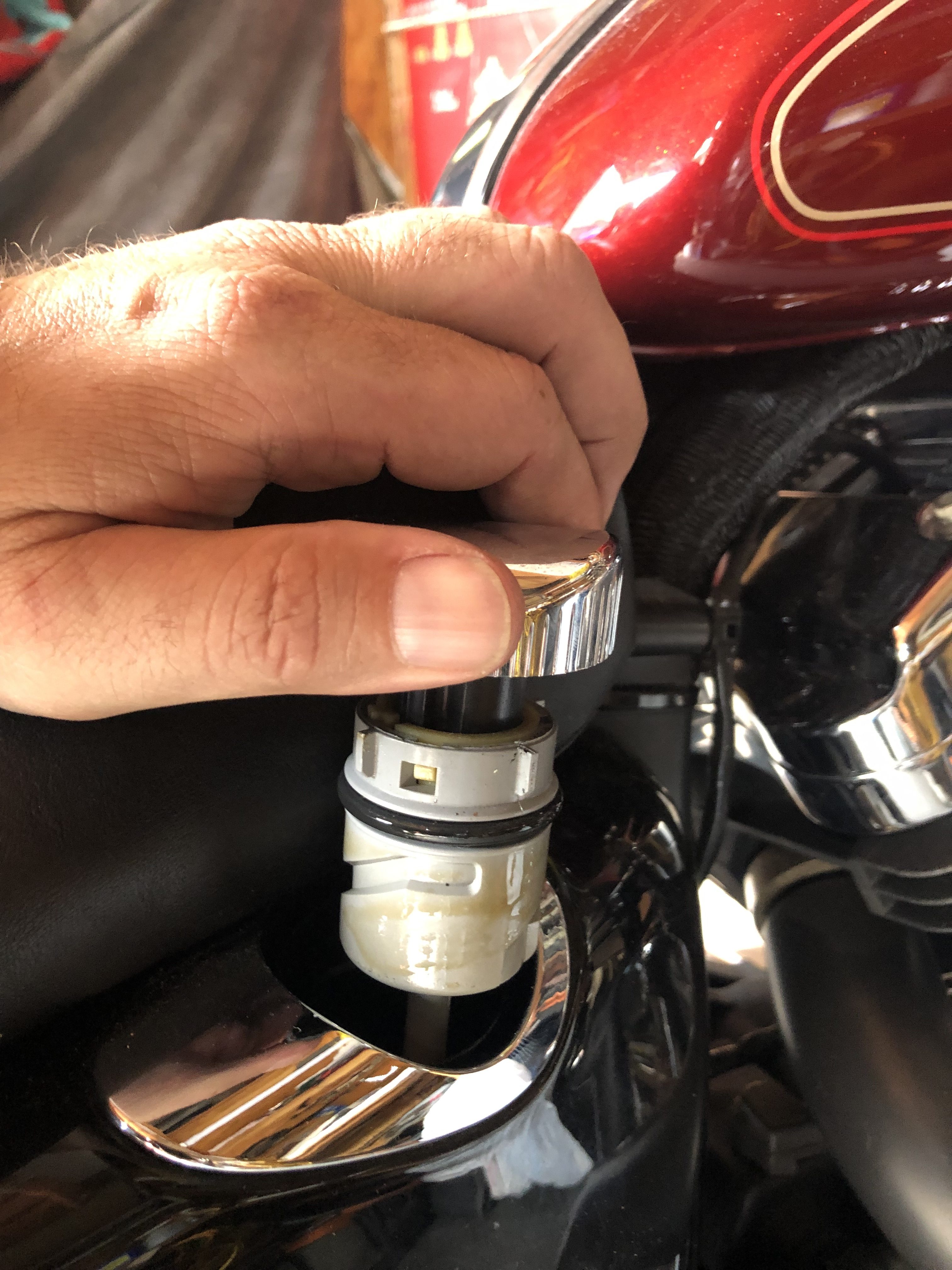 Installed S&S oil filter - I added a few ounces to the filter maybe filling it 1/2 to 3/4. I checked to make sure the old gasket came off with the old filter. I lubed the new gasket and did a quick dip and spin to get it in place so not to spill. Hand tightened till contact and 3/4 turn from there. All hands here no tools.