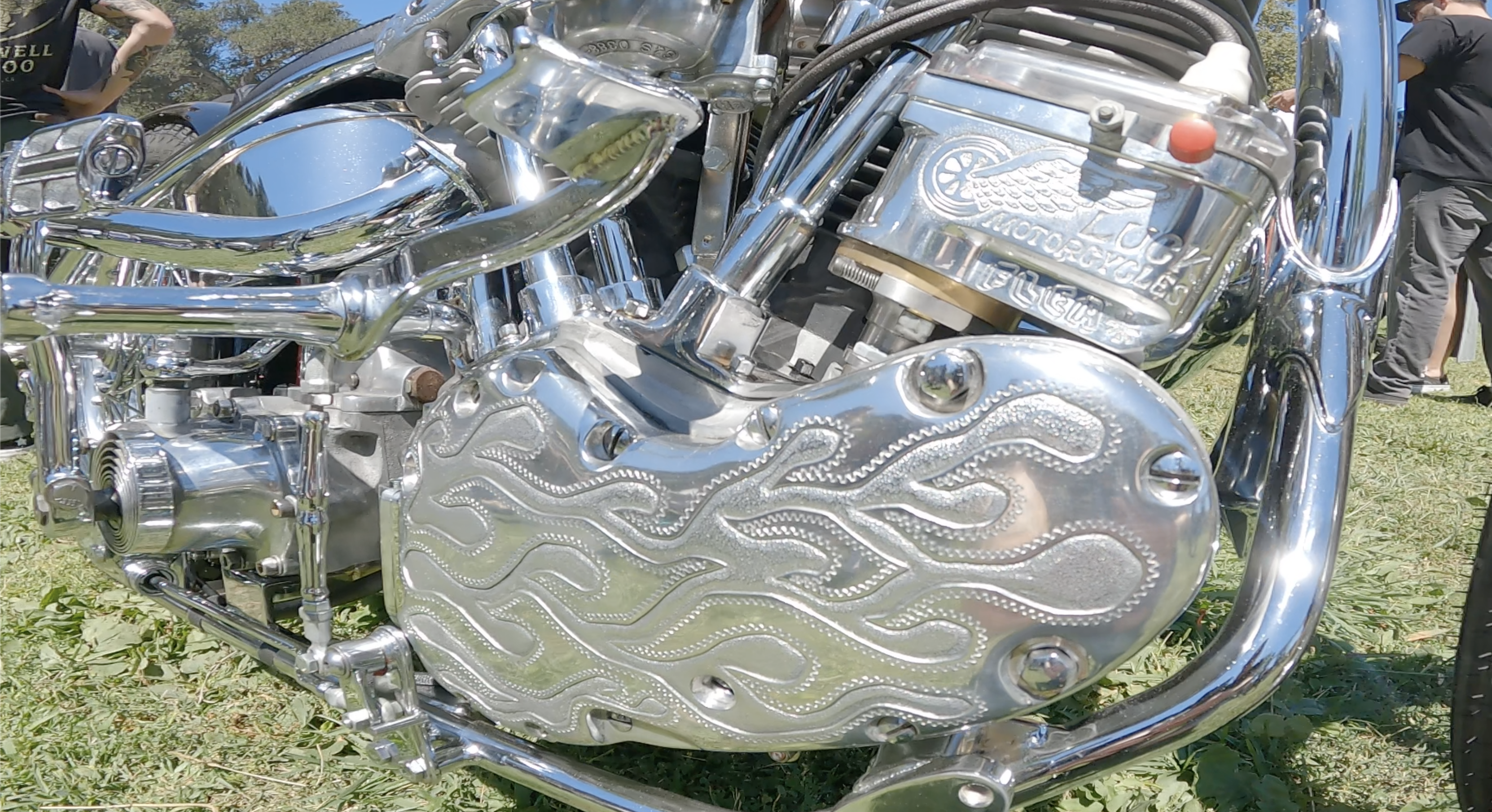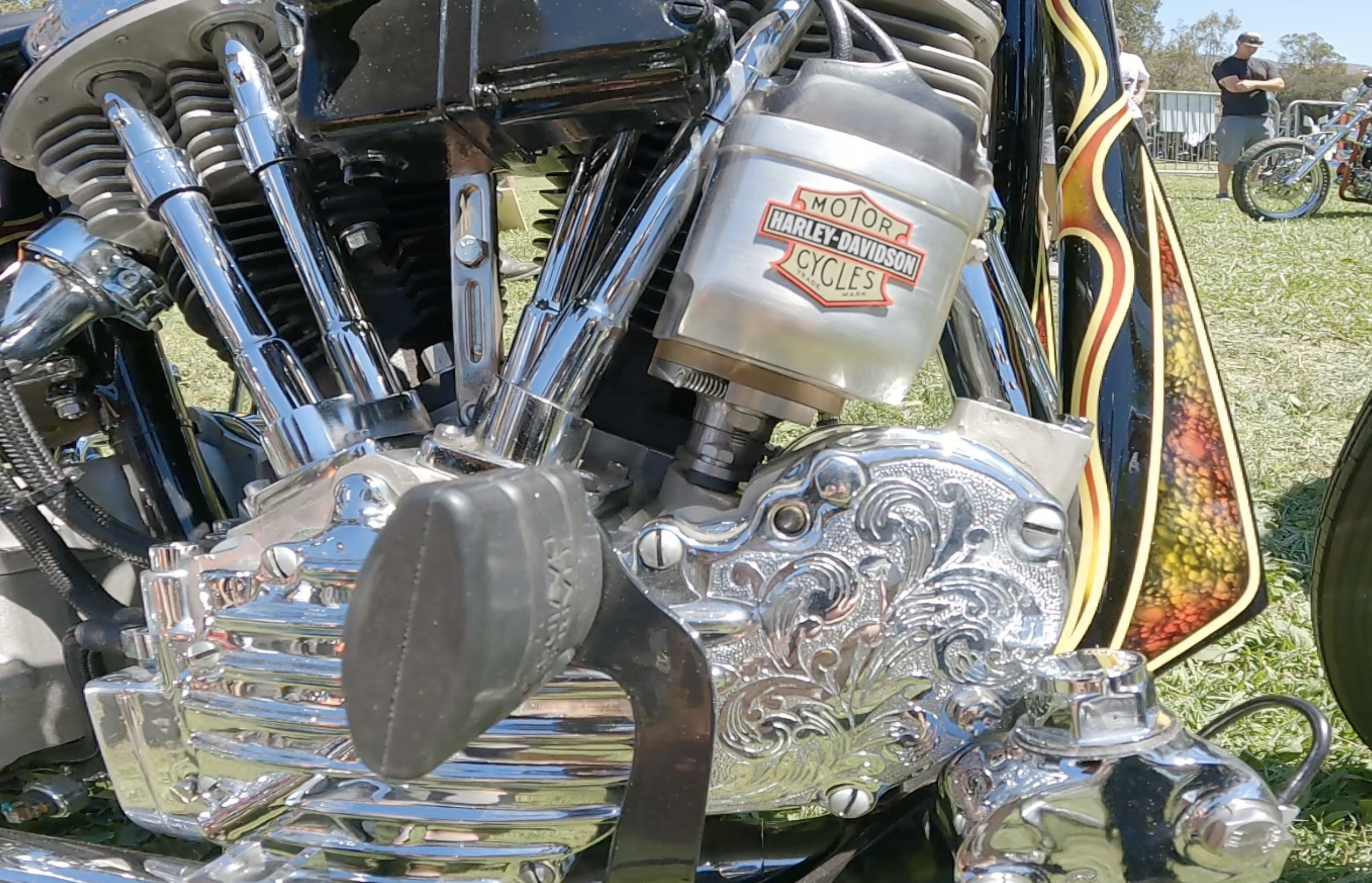 First, there is the invited builders area. This area is curated by the founders of the show and features some of the craziest builds you’ll find. Each of these bikes are built for this show and judged at this show by a selected panel of respected peers. This year's highlights were a panhead chopper with a sissy bar made from welded chain links, along with a few bikes sporting custom engraving on various engine components. One of the most interesting builds was that of Max Schaaf who, through what must be wizard levels of fabrication, pieced together a ’46 knucklehead into a ’58 duo-glide frame with a ’60 XLCH swingarm rear section.