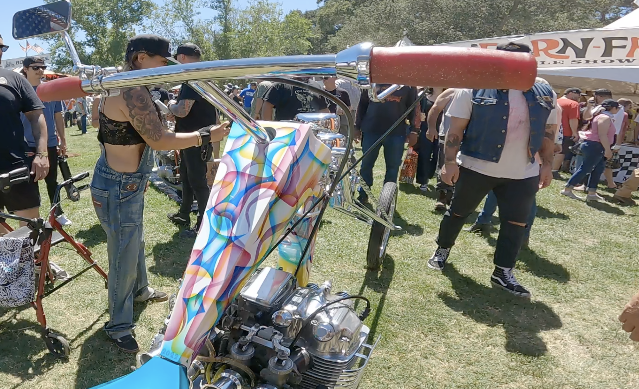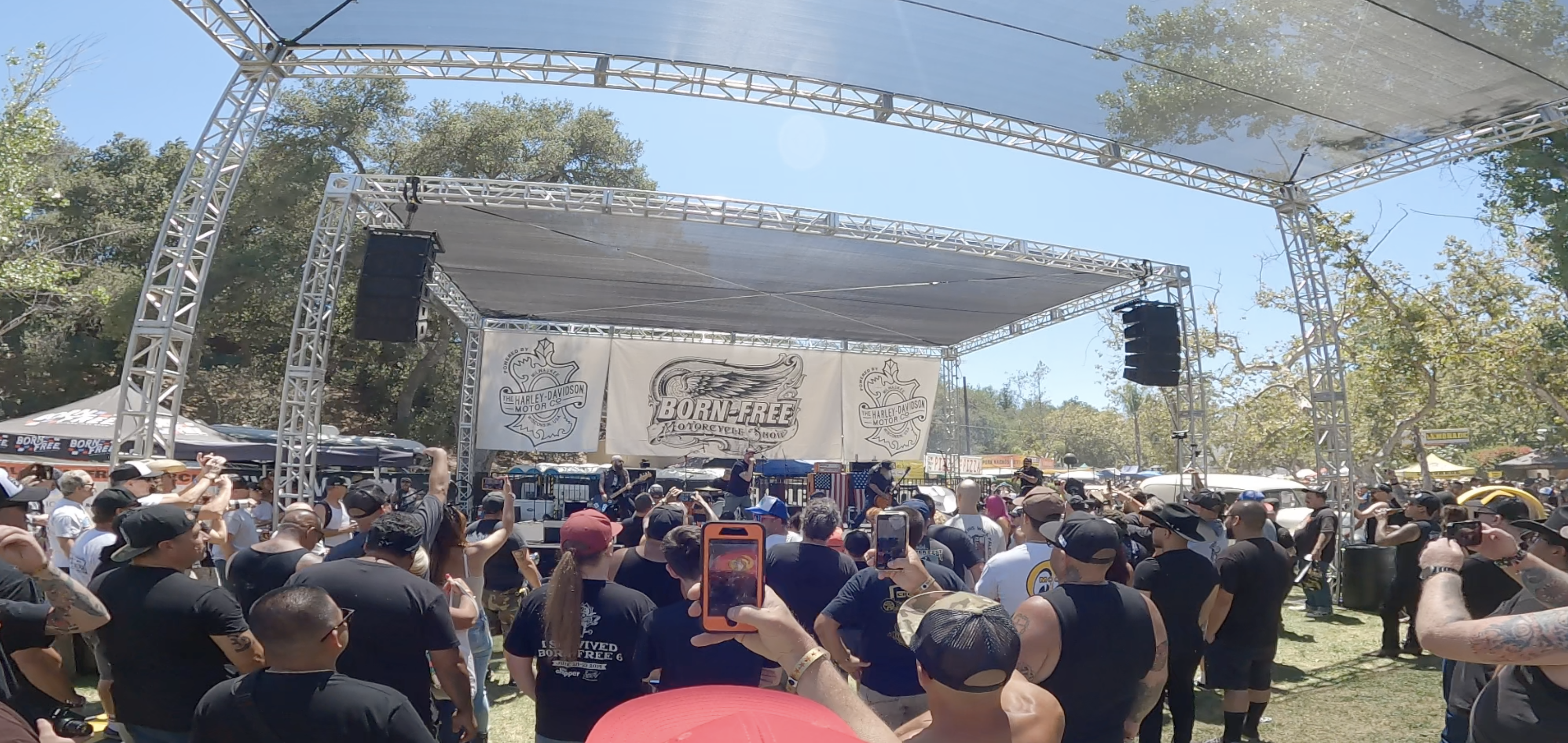 Born Free isn’t only about bikes though. It’s bike culture as well. Along with custom vintage builds also comes punk rock and skateboarding. This year, Vans sponsored a full-size half pipe with demos from skate legends Christian Hosoi and Steve Caballero. Born Free also hosted a stage with multiple bands, one being Revolution Mother which is fronted by professional skateboarder, and Black Flag front man since 2013, Mike Vallely. The rest of the 17 acres that's not taken up by thousands of motorcycles, a stage, a ferris wheel, a wall of death, and the halfpipe are vendors. All of The Who’s Who in the motorcycle scene have booths at Born Free. S&S, Arlen Ness, Vance and Hines, all of the choptastic clothing brands as well as bike crews and artists.