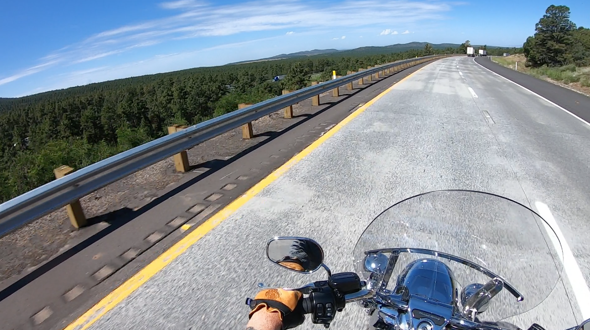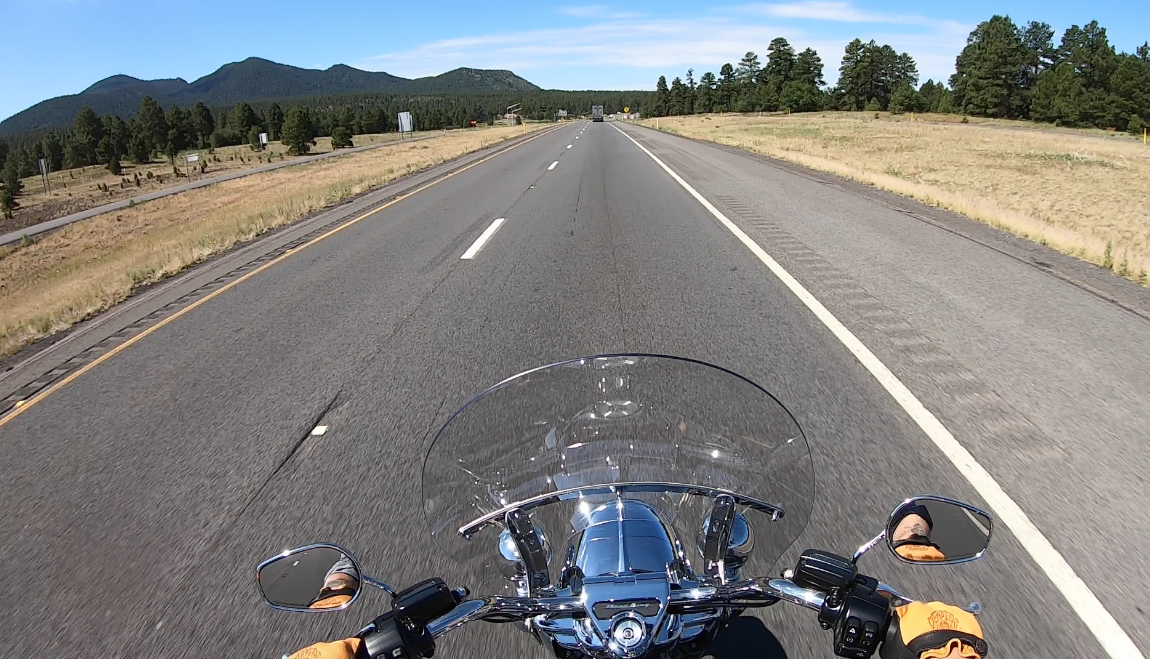 Coming into Flagstaff the terrain switched quite rapidly from desert to green with gorgeous pine trees which came as a shock to me as I had thought it would be desert for the entire ride. Tripping across 180 to 64 that leads you to the South Rim was one of the most desolate roads I had been on, seeing only a few cars and one other motorcycle with most traffic sticking to Interstate 40 to 64.